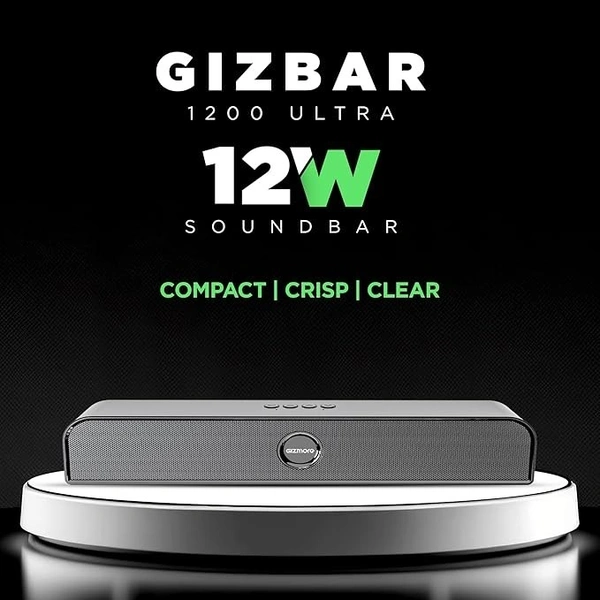 - ✅12W RMS Power: GIZMORE BAR1200Ultra soundbar offers immersive audio that delivers excellent clarity and crispness. Its 12W RMS speaker provide a wide frequency range, making it perfect for enjoying your music, movies, and more.