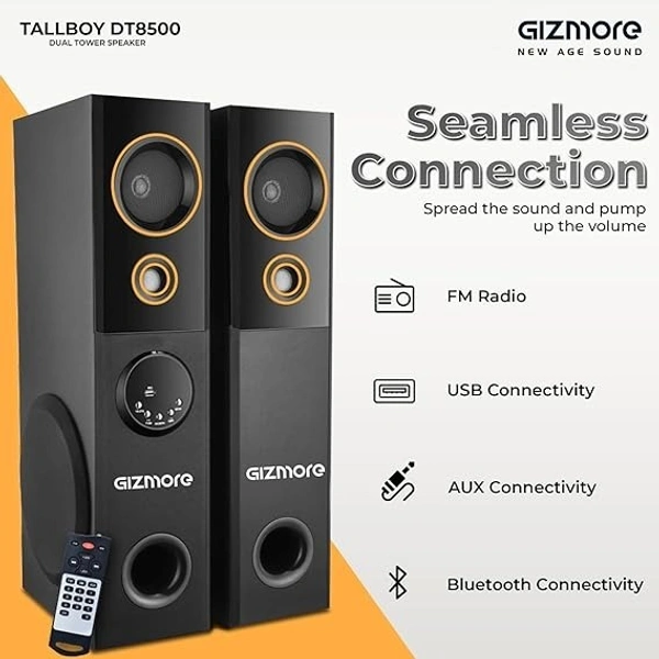 - POWERFUL BASS SOUND: It comes with 2 tower speakers with built in- Amplifier and RMS 80W / 8000 P.M.P.O output power which enhance your music listening experience as same as theatrical sound. Sound will not let you be monolithic and vibes reach to every nerves of listener, Features: Power output 80W RMS, Driver units: Subwoofer (8x2) Tweeter (4*2) LED Display. The New DT8500 Dual Towers from Gizmore make sure you get balanced sound. That’s why we have Silver Dome Tweeters that deliver crisp and clear sound to match the thump