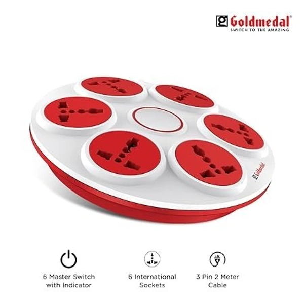 GOLDMEDAL 360 DEGREE POWER STRIP 6 SOCKETS EXTENSION BOARD