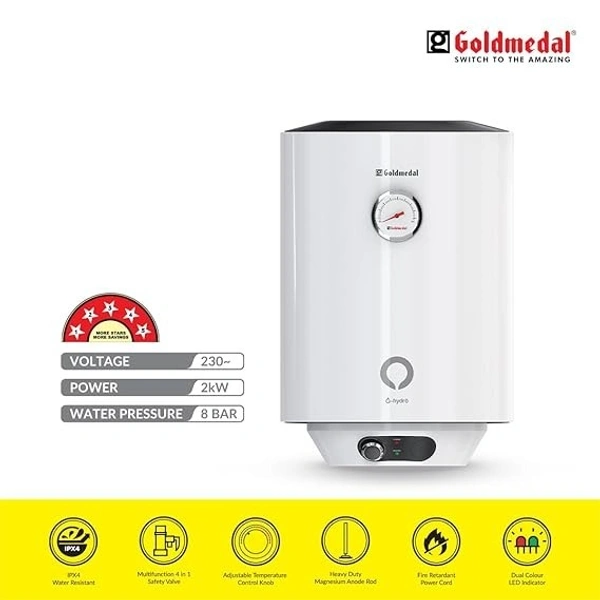 - With the G-Hydro range of water heaters, it’s more than just a bath; it's a daily ritual of renewal that effortlessly fits into your lifestyle. It featured Analog Temperature Indicator, Pre Calibrated Thermostat.