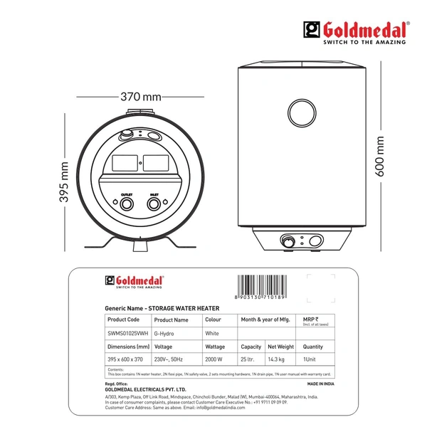GOLDMEDAL G-HYDRO 25 LITRE STORAGE WATER HEATER (GEYSER)