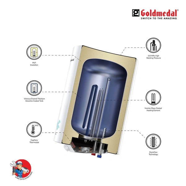 - As you step into its comforting embrace, the outside world fades, giving way to precious moments of tranquility. This water heater comes with Vitreous Enamel Titanium Glassline Coated Tank with Dynaflow Technology.