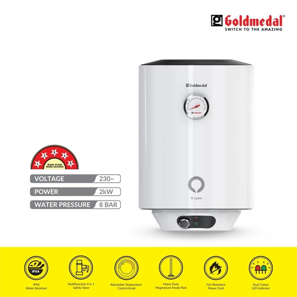 - With the G-Hydro range of water heaters, it’s more than just a bath; it's a daily ritual of renewal that effortlessly fits into your lifestyle. It featured Analog Temperature Indicator, Pre Calibrated Thermostat.