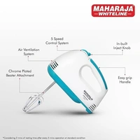 Maharaja Whiteline brings to you a one-of-a-kind appliance that helps you with your simple yet smart kitchen needs- Centuro Hand Mixer. The gear is equipped with a 5-speed control feature, letting you decide the depth of mixing & blending.