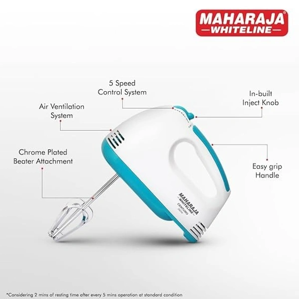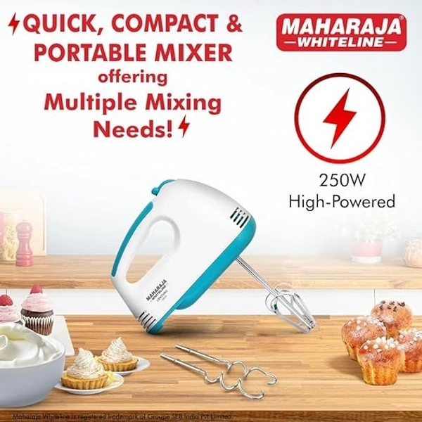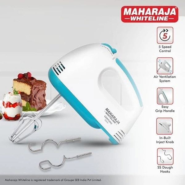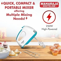 MAHARAJA WHITELINE CENTURO HAND MIXER WITH SS DOUGH HOOKS AND BEATER ATTACHMENT 250 WATT