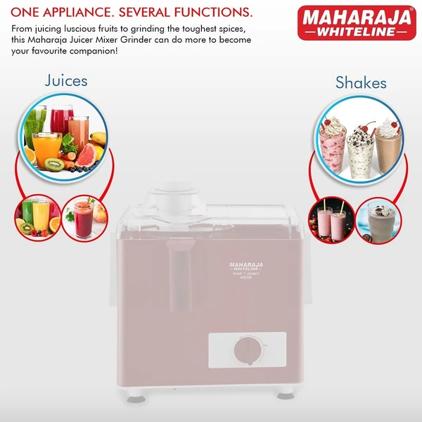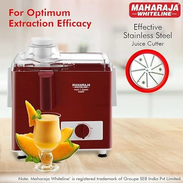 Mark 1 Classic Juice Extractor operates on 450W motor, comes with anti-drip spout, sturdy juicer mesh and effective stainless steel juice cutter for maximum juicer extraction. It is engineered to offer perfection to bring out delicious juicing every time.