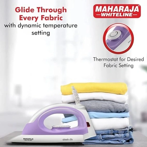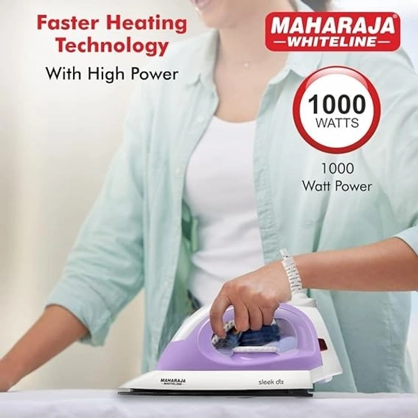 Maharaja Whiteline Plastic Sleek Dlx Dry Iron, 1000W (Pastel Violet & White)