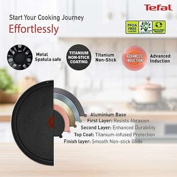 Tefal Day by Day Tawa 28 cm is the future of healthy cooking. The durable non-stick coatings of the tawa allow easy gliding of roti, paratha or chapati cooking it evenly. Day by Day Tawa promotes healthy eating by minimal use of oil. Designed and manufactured in France with the best quality materials, Day by Day Tawa is free of harmful elements making it completely safe for everyday cooking.
