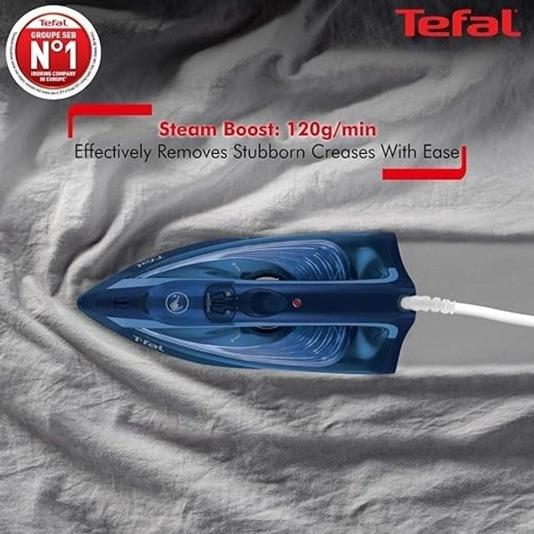 Tefal believes in delivering superb quality and functionality. Discover steam at your fingertip for hassle-free ironing! With a powerful steam boost of 120 g/min, this iron can easily remove stubborn creases from all types of fabrics.