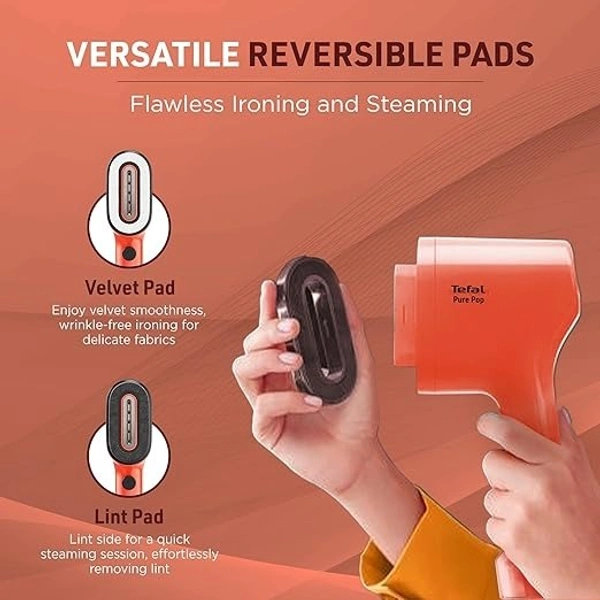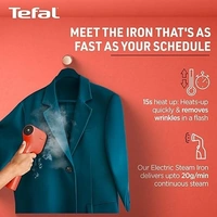 Pure Pop garment steamer by Tefal is a stylish, sleek and portable garment steamer that comes with a unique and patented reversible pad to enlarge usage of the steamer. It is perfect for travelers who want wrinkle-free crisp clothes wherever they go. Available in two color options like Red, Green, the Pure Pop garment steamer appeals to the young generation who wants to remain fashion-forward. The fast 15-second heating technology allows you to get ready in no time. Its compact design makes it fit in your travel bag with ease. innovative handheld steamer comes with 1300w power and 20g/min steam output for efficient steam distribution. The 2m cord of the garment steam makes it easy to. Featuring a 70ml water tank and reversible pad this garment steamer is a perfect option to obtain fresh wrinkle-free clothes every time. Pocket steamer by tefal is easy to use and portable with sleek design.