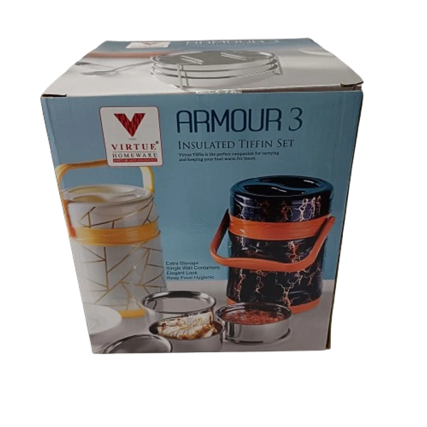 VIRTUE ARMOUR 3 INSULATED TIFFIN WITH 3 STAINLESS STEEL CONTAINERS
