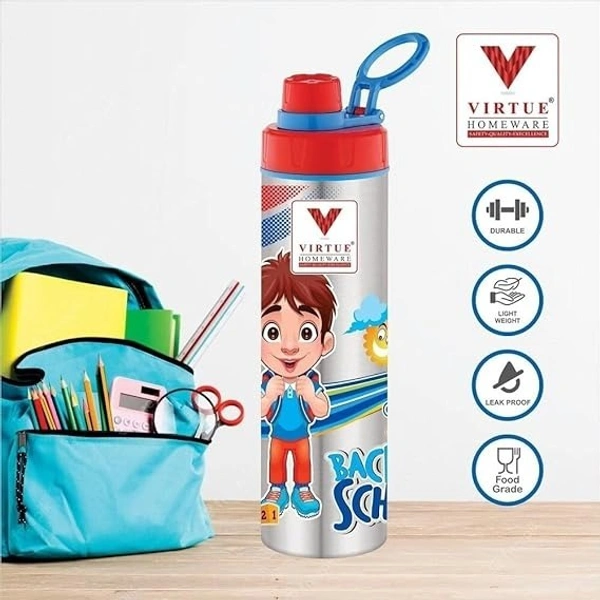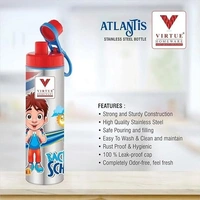 Virtue Homeware Atlantis Stainless Steel Bottle for Kids 800 ML. Features: - Strong and sturdy design High quality stainless steel Safe pouring and filling Easy to wash and clean Rust proof and Hygiene 100% Leak proof cap Completely Odor-free, feel fresh