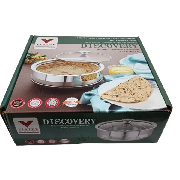 Virtue Discovery 2500 ml Insulated Stainless steel casserole with glass lid. Super polyurethane insulation. Keep your food hot for long time.