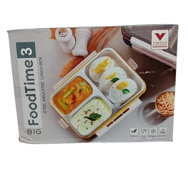 VIRTUE FOOD TIME 3 PARTITION BIG STAINLESS STEEL LUNCH BOX