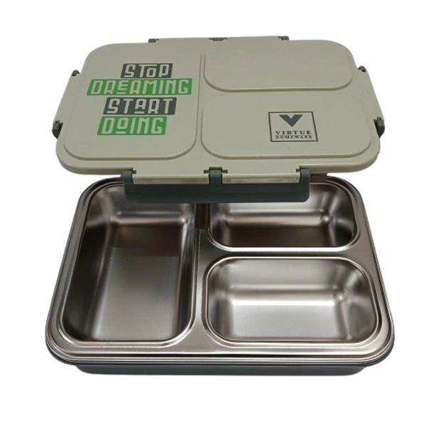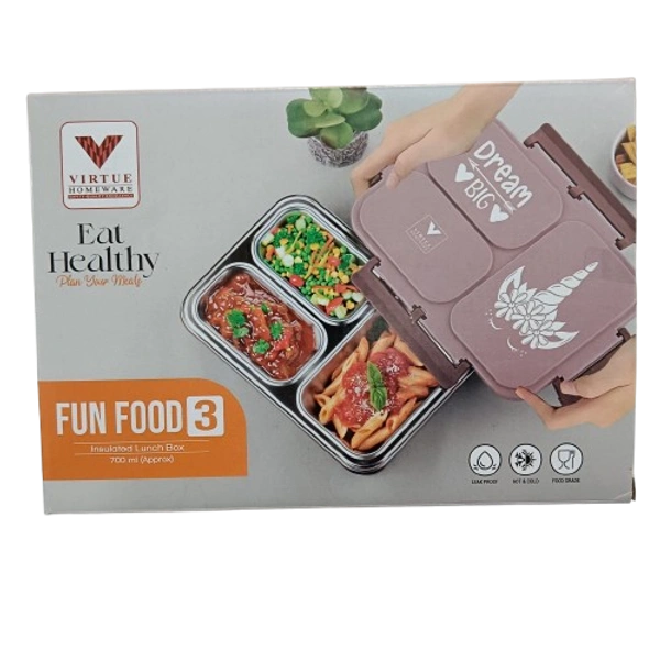 VIRTUE FUN FOOD 3 PARTITION STAINLESS STEEL LUNCH BOX