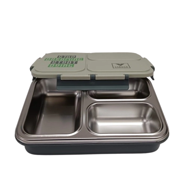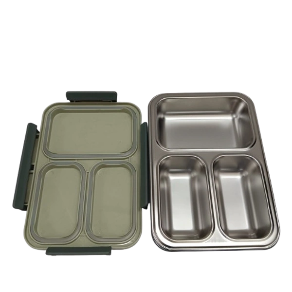 Triple Compartment Design – Three separate stainless-steel sections to keep food items fresh and organized without mixing.