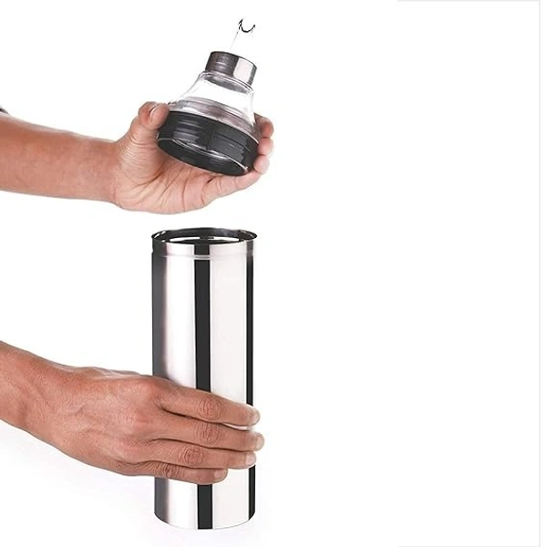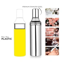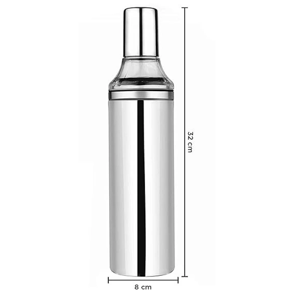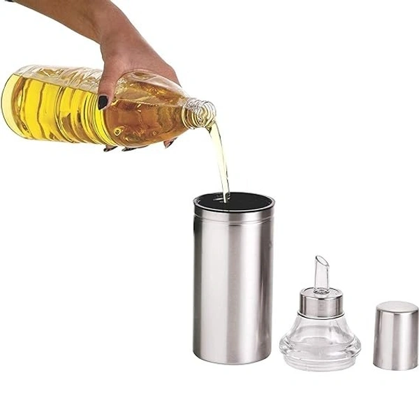 Safe and Premium Quality : Made from Superior Stainless Steel and BPA free Food grade material. Made from unbreakable material for nozzle and neck part. The products are made in India.,Leak proof threaded oil pourer neck. Wide mouth easy to clean. Easy to open and use. Easy to fill and pour. Top stainless-steel cap keeps inner oil dust free and insects free., Sharp finish, slim, stylish and trendy for Modern look to your kitchen. Color: Silver, Material: Stainless Steel.