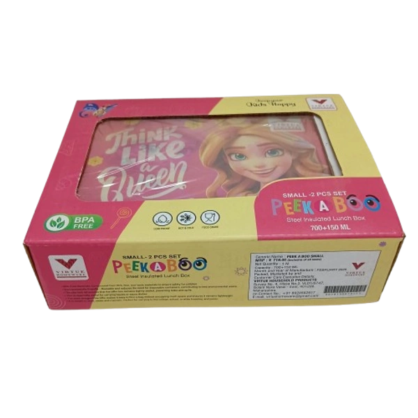 Make lunchtime fun and fresh with the Peekaboo Steel Insulated Lunch Box from Virtue Homeware! Designed for kids, this BPA-free, leak-proof, and insulated lunch box keeps meals warm and delicious for hours. Featuring a vibrant "Think Like a Queen" design, it’s perfect for school or travel.