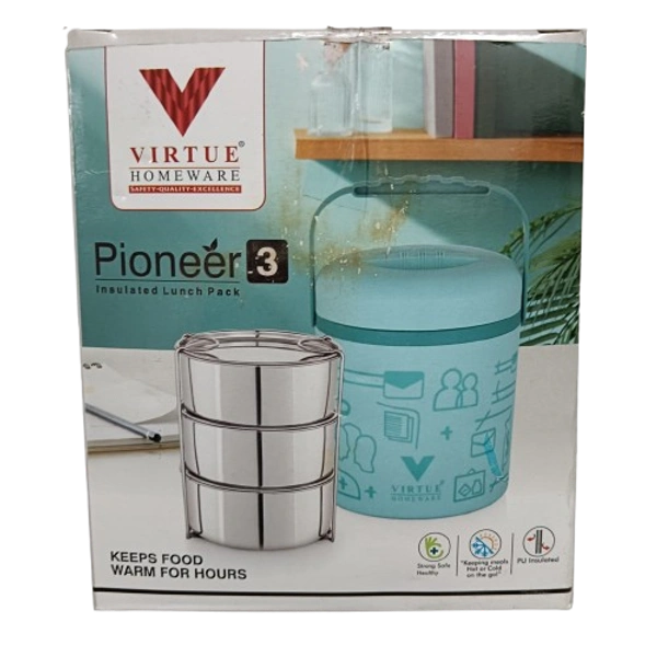 Virtue Pioneer 3 insulated box pack is ideal for office going people, ideal for dry and semi liquid food. It is compact lunch box to carry full meal, kept food fresh for long hours. Having a handle for easy carrying.