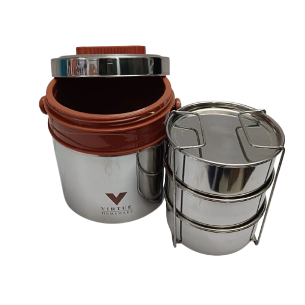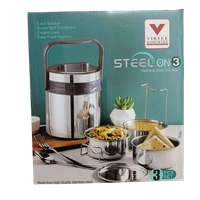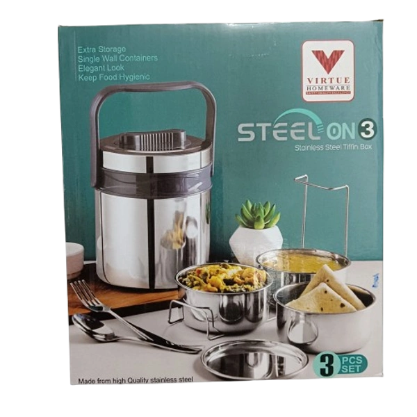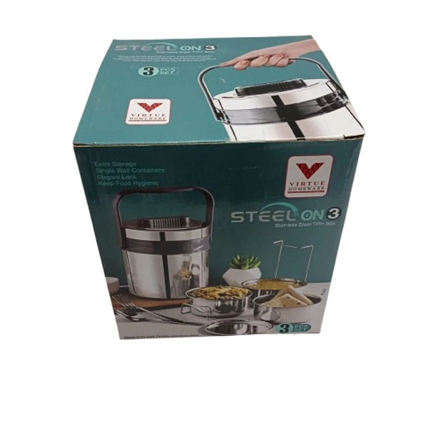 Virtue Homeware Steel On 3 – Stainless Steel Tiffin Box (3-Piece Set)
