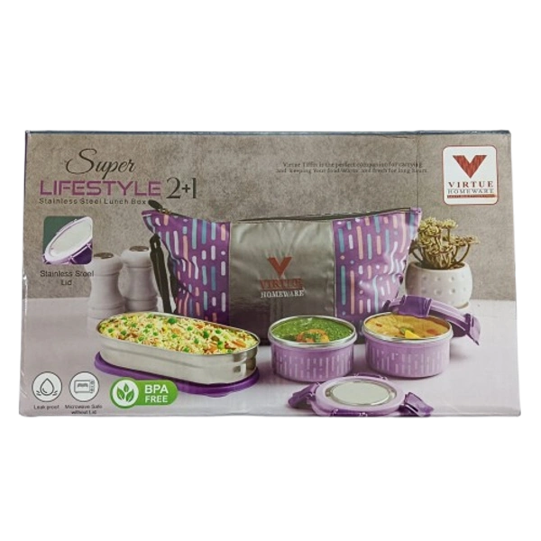 VIRTUE SUPER LIFESTYLE 2+1 STAINLESS STEEL LUNCH BOX 3 CONTAINERS