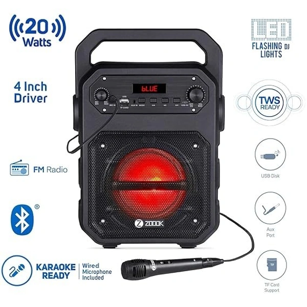 - Superior sound quality Whenever life takes you, experience your music with powerful stereo sound and punching bass, Items Included: Zoook Rocker Thunder Bluetooth Speaker, Wired Microphone, 3.5m Aux Cable, Micro USB Charging Cable, User Guide, Certificate of Authenticity