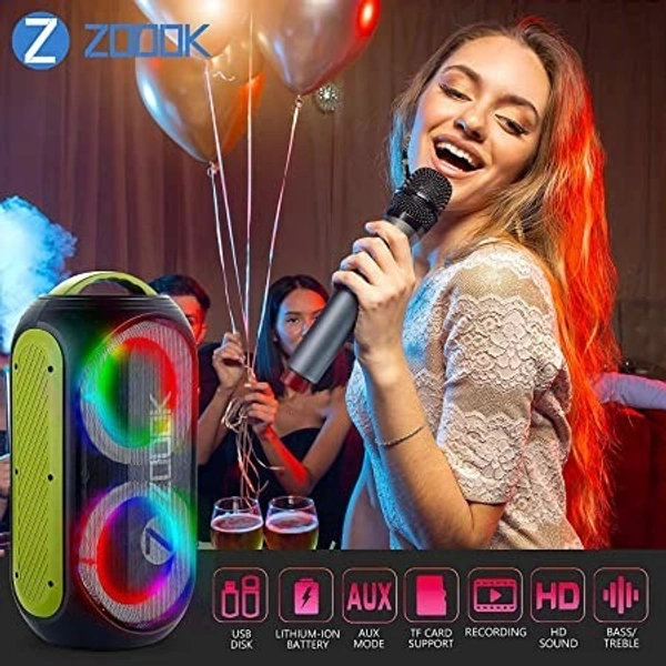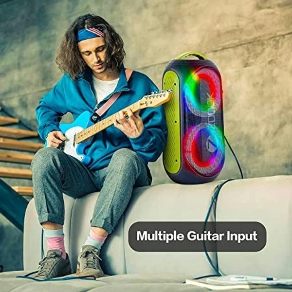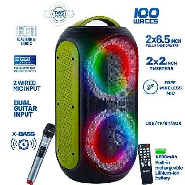 Zoook Rocker Show Stopper 100 watts Karaoke Bluetooth Party Speaker with Guitar Input, Wireless Mic, One Click Recording/Dual Big Drivers/Amazing LED Light Show/TWS/Echo control/4000 MAH